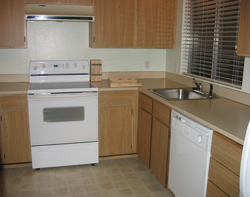 The kitchen. Pretty good, but dated. New cabinets and countertops are in order. Maybe for Christmas.