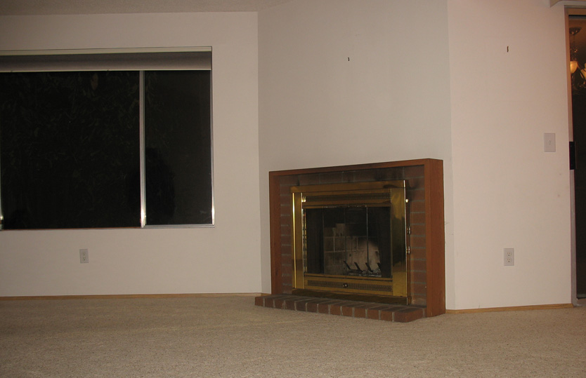 Part of the living room, facing the rear of the house. That's a real wood-burning fireplace.
