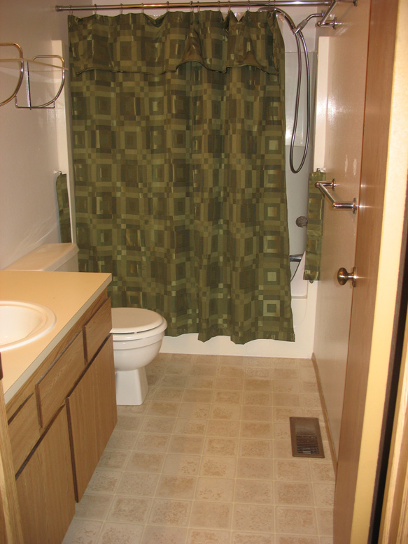 Upstairs master bathroom. Despite the doors being *right* next to each other, there's a sliding door connecting this to the master bedroom. I guess a poor man's ensuite? Well it's a bathroom, it works.