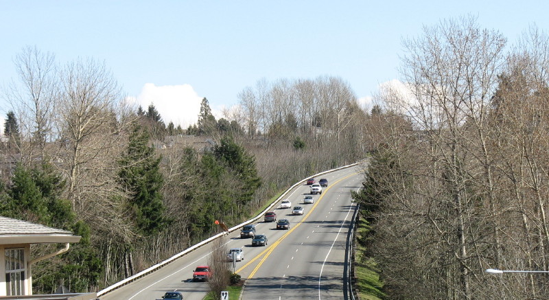 To the East, towards Redmond. The exit to I-405 is about a minute's drive up that hill.