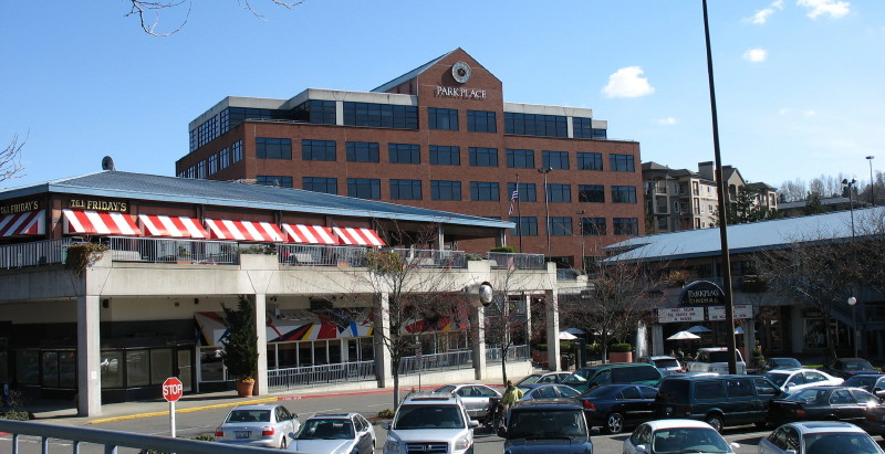 The plaza across the street from me. Note a TGIF up top, a sushi restaurant below (note MS folks: they take prime card), and a small movie theatre.